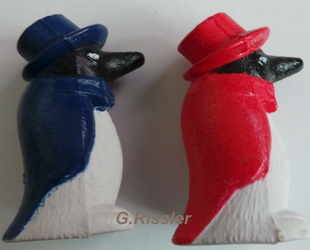 Rätsel gelöst! Und wieder ein Traum von einer unbekannten Fremdfirmenlegende geplatzt ;-) Bei diesen Figuren handelt es sich um Spielfiguren des Halma-Spiel "Pengus" der Fa. Fun Connection. Viele Dank an Michael Hahne für die Auflösung! |