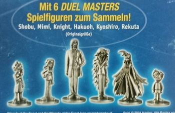 Rätsel gelöst! 15 Jahre hat es gedauert und die Auflösung ist diese Zeit wert ;-( Es handelt sich um Spielfiguren zu einer Sonderausgabe des Spiels Monopoly aus dem Jahre 2004 zur Anime Serie "Duel Masters". Viele Dank an Heike Graeber für diese überraschende Auflösung! |