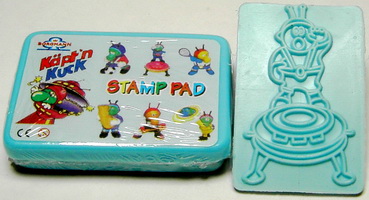 | Stempelkissen jeweils in den Farben blau, gelb oder grün; Figuren immer gleich |
