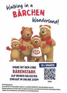 Auf jeder Packung Engels Creme, Easy Going Porridge oder Go Nice! Müsli ein Sammelcode. Jeder Sammelcode = 1 Bärenpunkt. Für 7 Bärenpunkte bekommt man einen Bären nach Wahl zugesandt. Aktionszeitraum Sammelcode 01.03.2025 - 31.12.2025 In den Ruf Bären Muffins, Brownies, Pancakes und Cookies Backmischungen ist jeweils direkt eine Figur enthalten. |